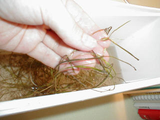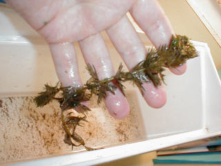 July 12, 2002 Fresh from my Chesapeake Bay Foundation training in finding and identifying underwater grasses, I took a tour of Weems Creek and found 4 varieties of submerged aquatic vegetation (SAV) in the creek and around Priests Point into the Severn River. There are samples of each variety below. The horned pondweed is an early Spring grass, and so it was receding an looks very small compared to the other varieties. The rest flourish in the summer. It was wonderful to see the grasses come back this year, even though we can't claim it's because of the great restoration work we've done. The grasses were abundant because the drought resulted in less stormwater runoff. Less runoff meant less suspended sediment and less nutrient loading in the creek. Therefore, the grasses could receive the sunlight they need to flourish. Although we can't credit our restoration efforts for the return of the grasses this year, their return proves that if we continue to reduce sedimentation and nutrient loading by changing how we manage stormwater, we can have underwater grasses even in non-drought years. If you want to look for grasses, here are some hints: